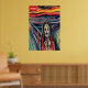 A zombie walking on a bridge. This is a AI generated art inspired by Edvard Munch Scream