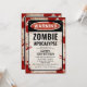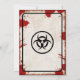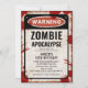 Vintage look invitation for a zombie outbreak-themed party with a rusty WARNING sign, blood stains, biohazard sign, and screws.