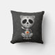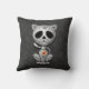 This adorable grey kitten design is decorated with delicate swirls and dot patterns. Yellow flower pedals circle the pure black eyes in the tradition of the Day of the Dead sugar skulls. The cat is sitting down, looking forward with its tail waving in the background. The oversized head sits on a tiny body which creates a playful, cartoon like appearance. A five point star sits in the middle of the kitten’s forehead while a bright red and yellow heart appears in the centre of the chest. A shadow falls onto the dark grey background making the design appear to float just above the surface of this pillow. The cute little cat is a fun and stylish design inspired by the beautiful patterns of Day of the Dead sugar skulls.