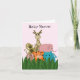 A cute group of zoo animals accents this baby shower invitation. A pink background with green grass borders. A cute tall giraffe, a monkey, bunny, tiger, hippo and a pink elephant accent this card.