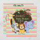 Cute, jungle, zoo animal theme baby shower design on Colourful Bright Rainbow Stripes, red, orange, green, yellow, aqua turquoise pattern. Features happy cartoon lion, elephant, zebra, giraffe, and monkey. Neutral baby shower or baby sprinkle design for baby boy or girl that you can personalise. Visit our store, Favours and Decor, for many more great party gifts and decorations for goody bag stuffers and decor. Thank you!
