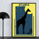 Retro Vintage Poster for the Zoo Atlanta in Atlanta, Georgia, USA. It represents a giraffe at night with moon, stars and palm leaves. Perfect gift idea or home decor for zoologist and for those who love animals, wildlife, zoos, especially the great American Atlanta Zoo.