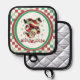 This gift was perfect. Wonderful job and amazing pixel graphics. Couldn't have asked for a better product. The package arrival was too late to be a Christmas gift but it came right after and ended up being better than any other gift that was opened on Christmas morning. I was able to get it just in time, 3 days before the family member I had in the custom image sadly departed. Now the oven mits I had ordered are permanently placed on the memorial wall that was dedicated to the best dog, best kid, and best friend we could ever had. Thank you Zazzle for helping keep those memories alive!!!