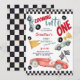 Zooming into one speed racing car first birthday invitation