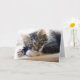 This precious greeting card features our adorable gray striped Siberian kitten, Zorro, with his sweet little white paws and fluffy ears as the lays sleepily on the windowsill. Zorro began his little life as a feral kitten who was abandoned in our backyard by his mother. Once we rescued him, he captured our heart and became part of our family. There is just something so special about Zorro that makes you smile every time you see him. Let little Zorro spread a smile with every card you send. Perfect for all cat lovers.