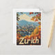 Zurich Switzerland Art Vintage Travel Illustration Postcard