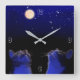 Zwei Katzen beobachten Mond und Sterne Square Wall Clock